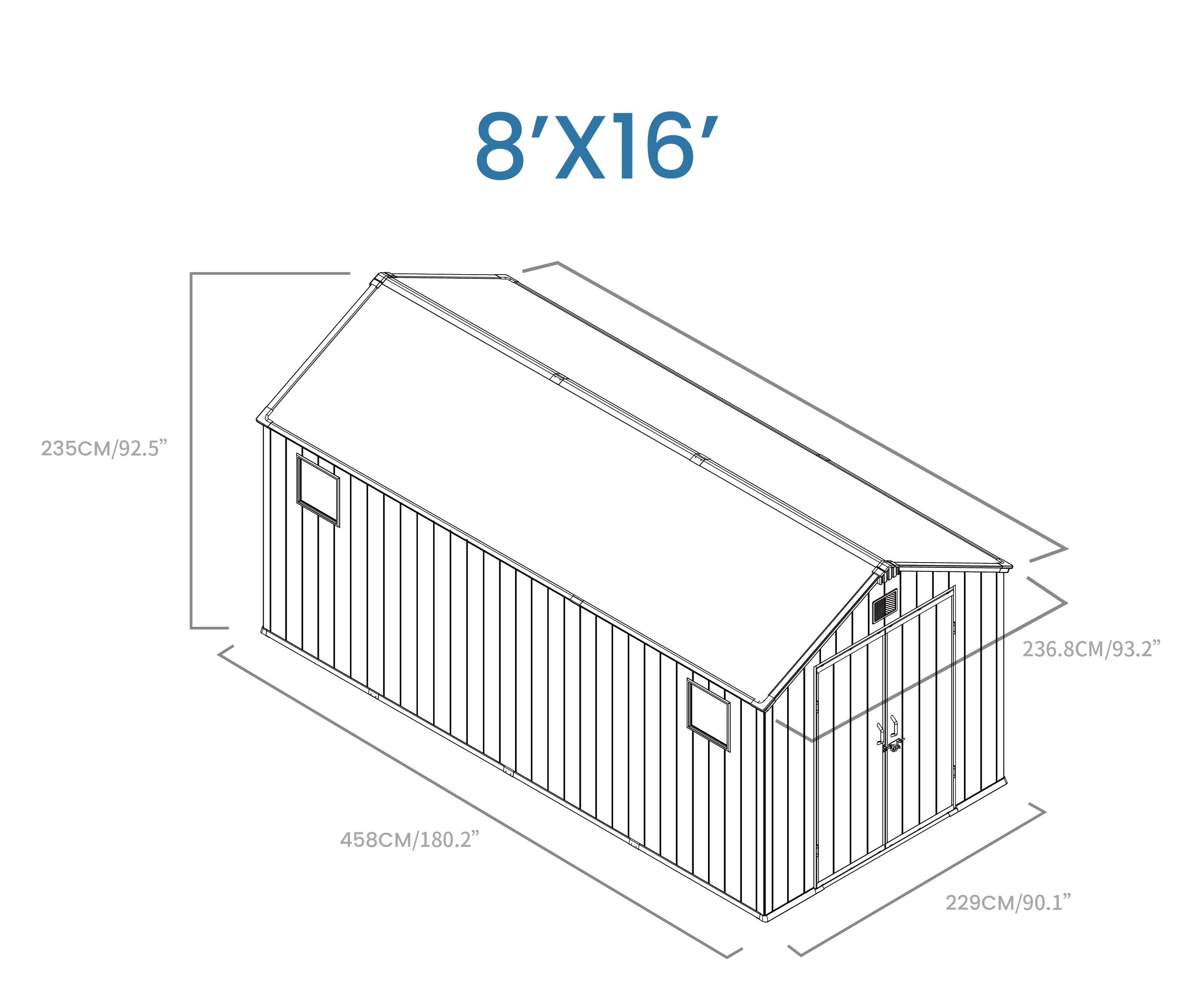 COBERTIZO APEX de plástico de fácil montaje (8'x16'ft)