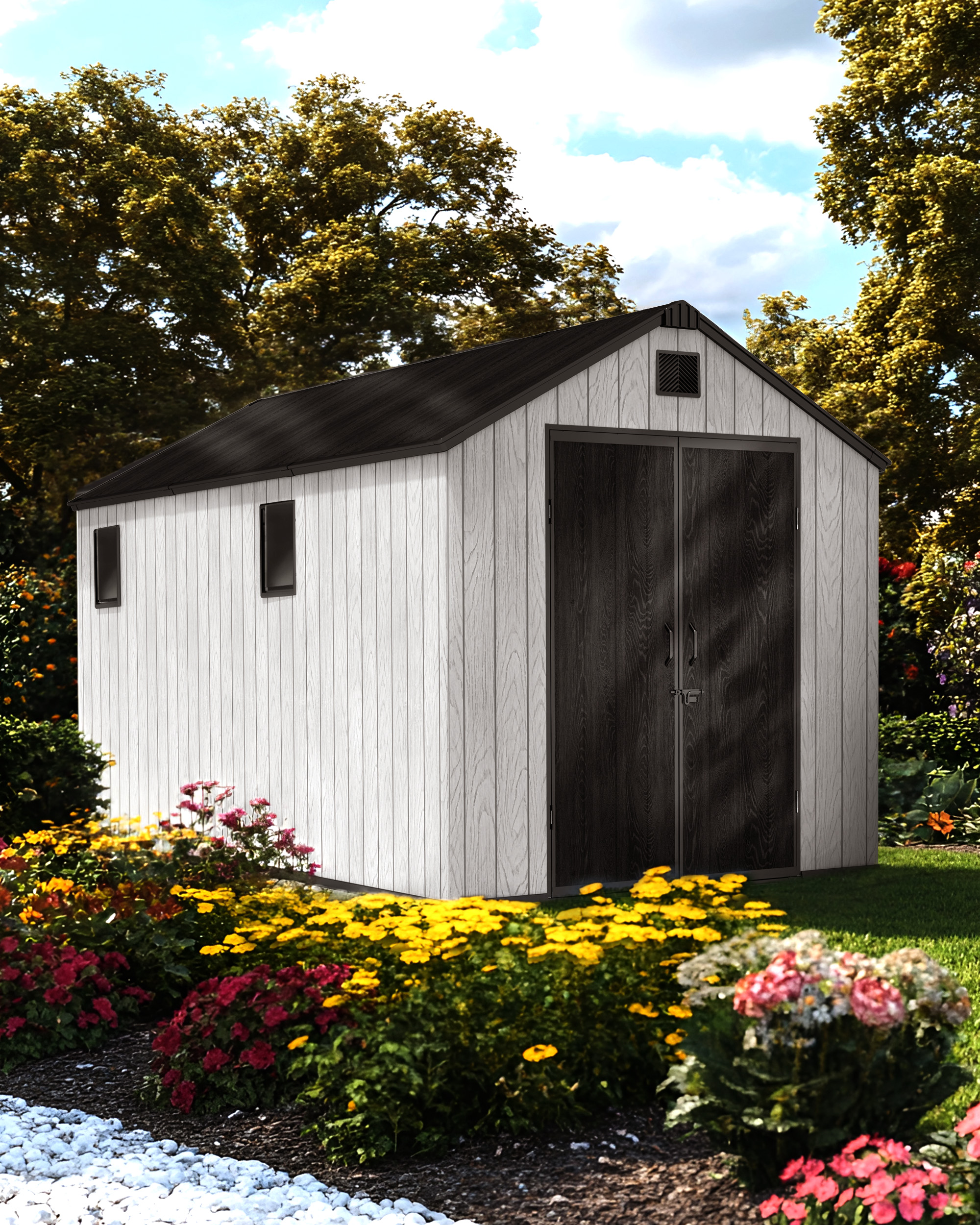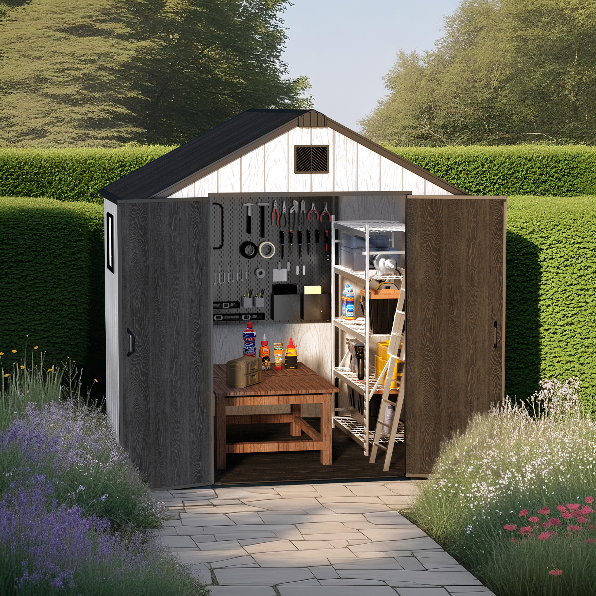Usted está aquí: Hogar » Productos » Almacenamiento al aire libre » Cobertizo de techo Apex » COBERTIZO APEX de plástico de fácil montaje (8'x16'ft)